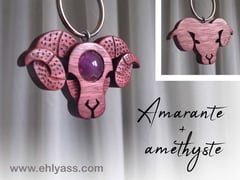 Porte-clés / bijou de sac Bélier en bois + Pierre
