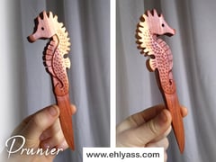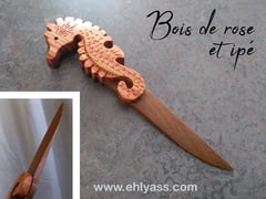 Coupe-papier Hippocampe en bois de rose et ipé scu